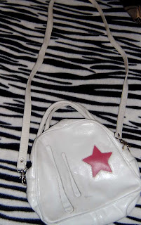 BOLSA EM COURO BRANCA COM ESTRELA ROSA